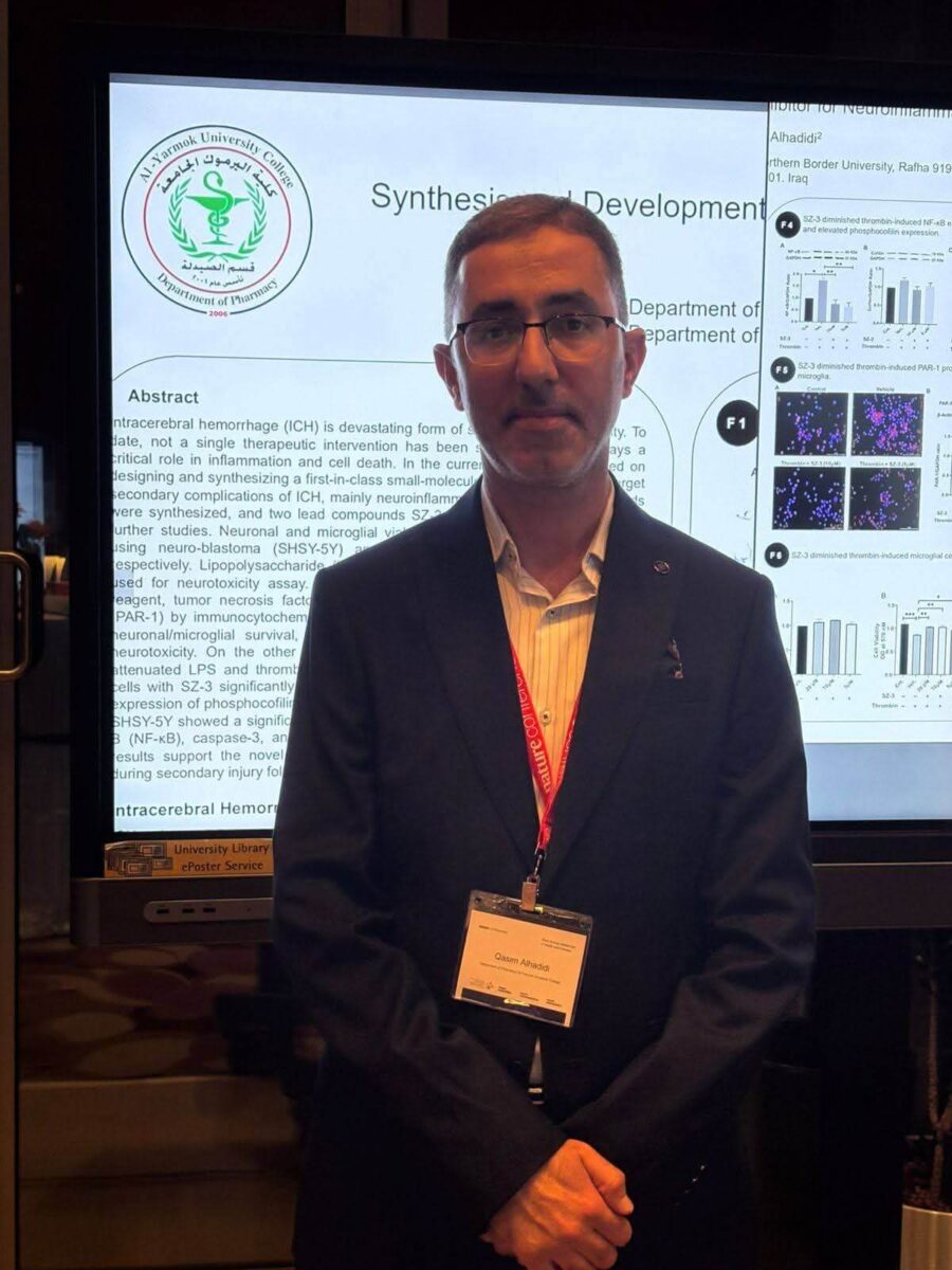 25/12/2025شارك رئيس قسم الصيدلة الدكتور قاسم محمود جمعه في مؤتمر (Brain Energy Metabolism in Health and Disease) والذي عقد في مدينة جدة في المملكة العربية السعودية للفترة من ٣-٥ /١٢ والذي نظمته جامعة الملك عبدالله للعلوم والتكنولوجيا (KAUST) وبالتعاون مع مجموعة ال Nature للمؤتمرات وقد تناول المؤتمر آخر المستجدات العلمية في مجال امراض الدماغ الناتجة من اضطراب الأيض الخلوي وكيفية ايجاد سبل علاجية جديدة تسهم في علاج الكثير من الأمراض العصبية والنفسية. وقد تم على هامش المؤتمر اللقاء مع مجموعة من الباحثين في هذا المجال والمشاركة في بوستر علمي